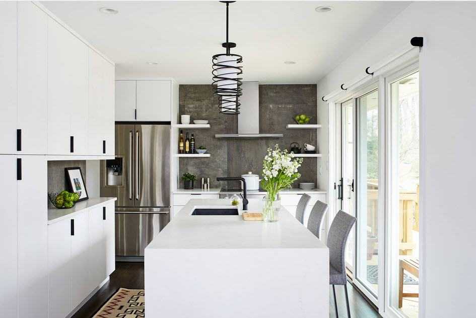 Не забывайте про освещение! Продумайте разные сценарии и используйте светильники с пользой для себя. Например, в рабочей зоне свет должен быть ярким. А над обеденным столом или барной стойкой — теплым и приглушенным.