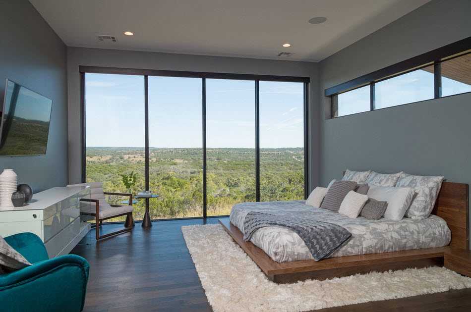 Спальню в стиле контемпорари оформляют по тому же принципу, что и гостиную. Чем больше простора, тем проще организовать обстановку. Правда в этой комнате можно проявить больше фантазии – кроме пастельных спокойных цветов можно использовать яркие мотивы.