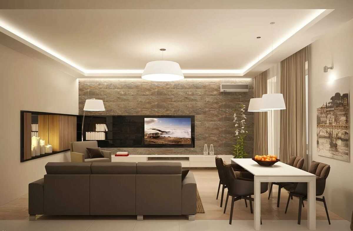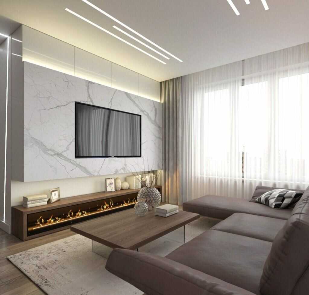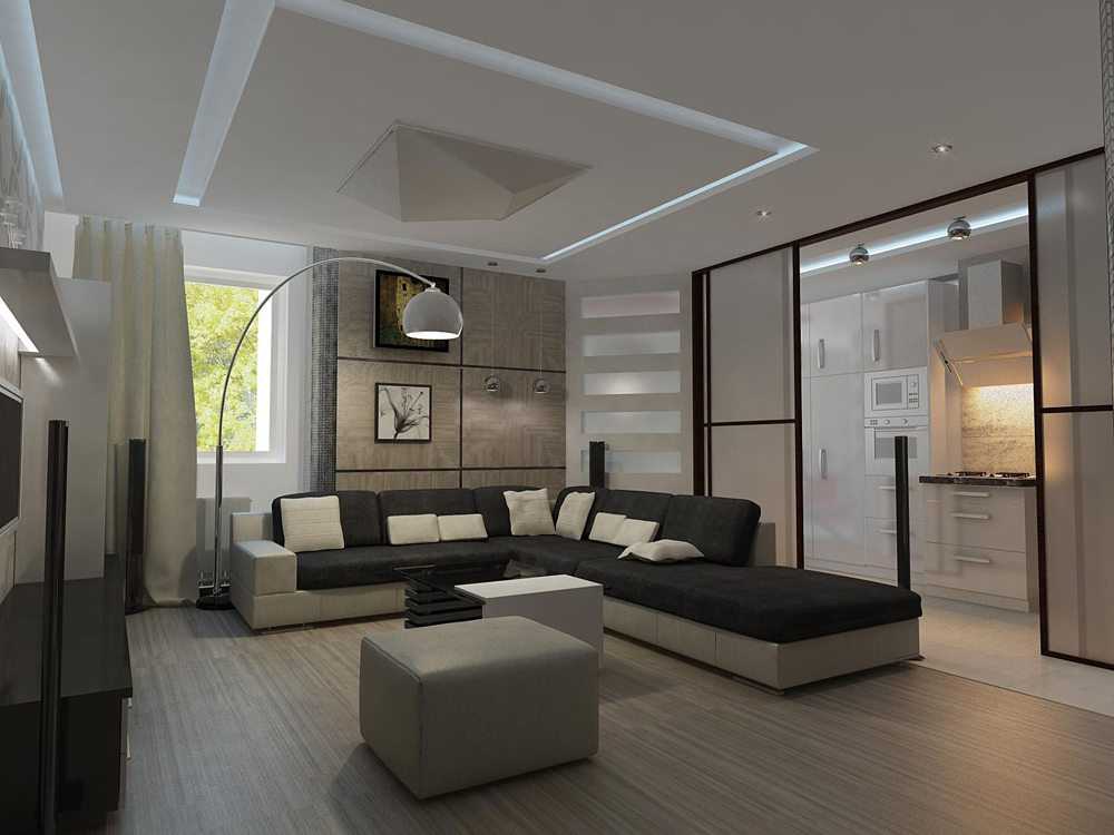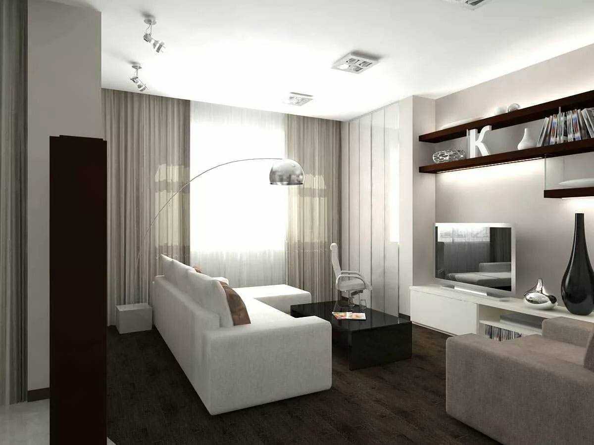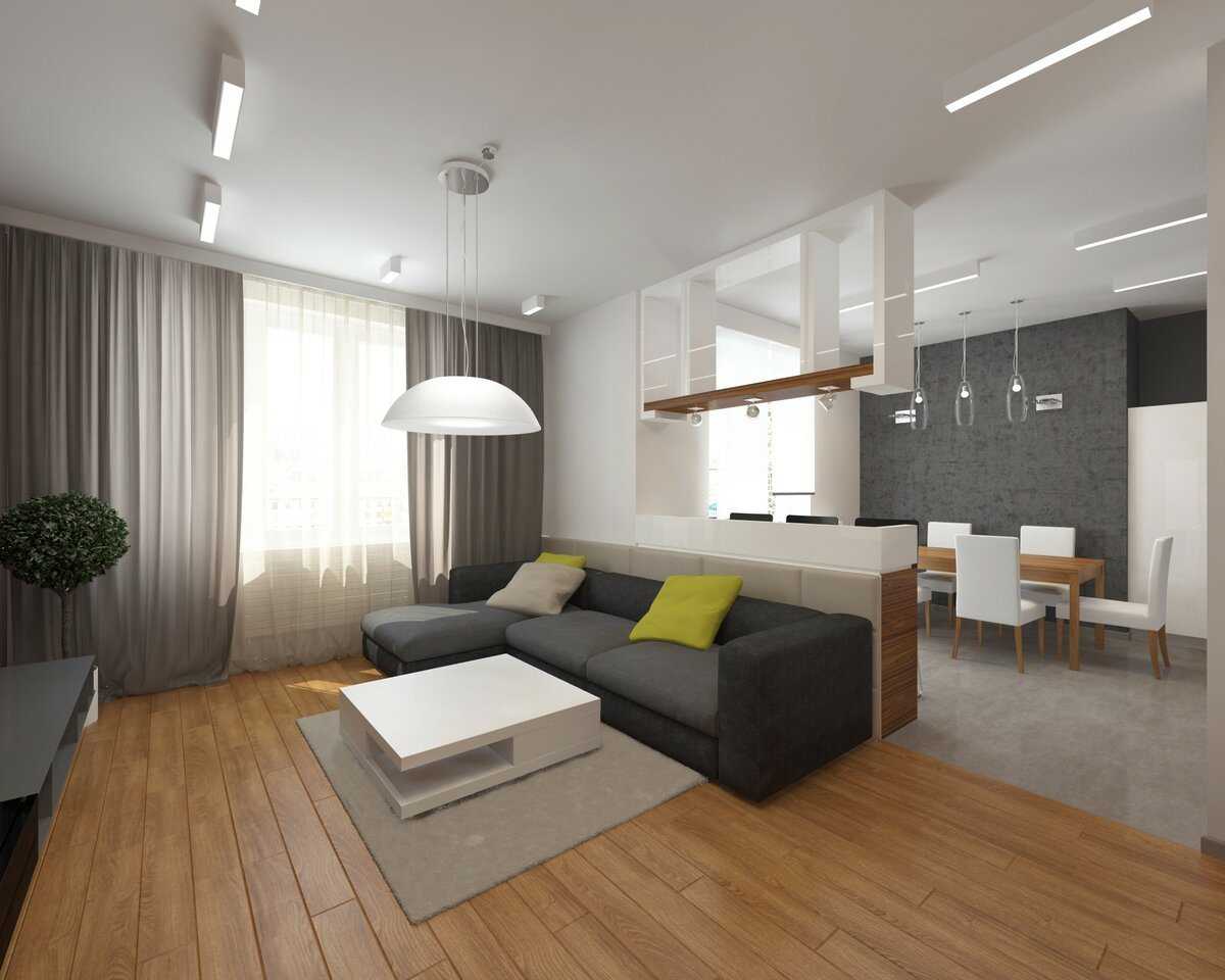 Иногда комнату совмещают со столовой или кухней для увеличения пространства. Мебель в гостиной занимает 20-30% от общей площади помещения, имеет правильную геометрическую форму. Исключается вся декоративная отделка: извитые линии, рисунки, орнамент. Главное при выборе предметов интерьера ‒ это лаконичность, строгость, функциональность. В гостиной в стиле минимализма должно быть достаточно свободного места.