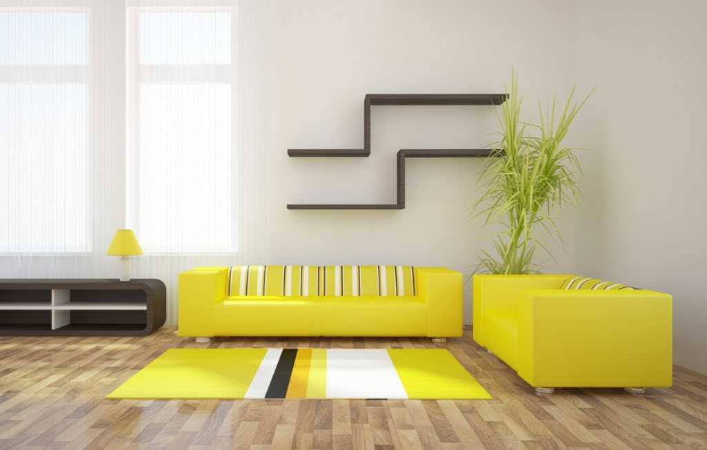 Желтый – яркий и солнечный цвет, который также подходит для гостиной в стиле минимализм. При этом мы рекомендуем использовать не насыщенные тона, а приглушенные теплые оттенки желтого (песочный или кремовый).