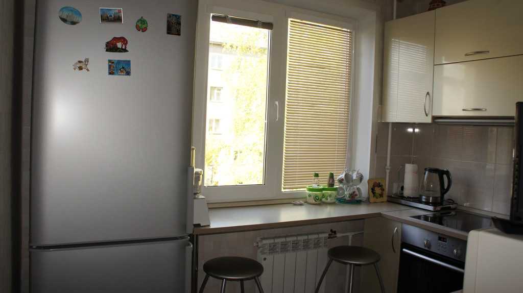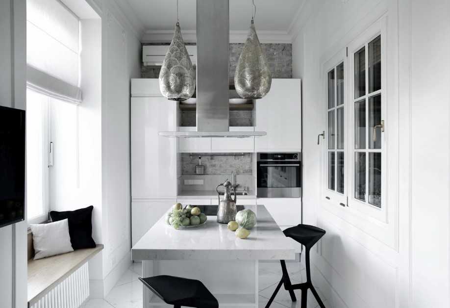 Таким образом удается соединить комнату с гостиной, воссоздать кухню-столовую. При этом зонирование осуществляется посредством мебели, света, стеклянных перегородок и арок. Расширение окон позволяет сделать кухню светлой, просторной.