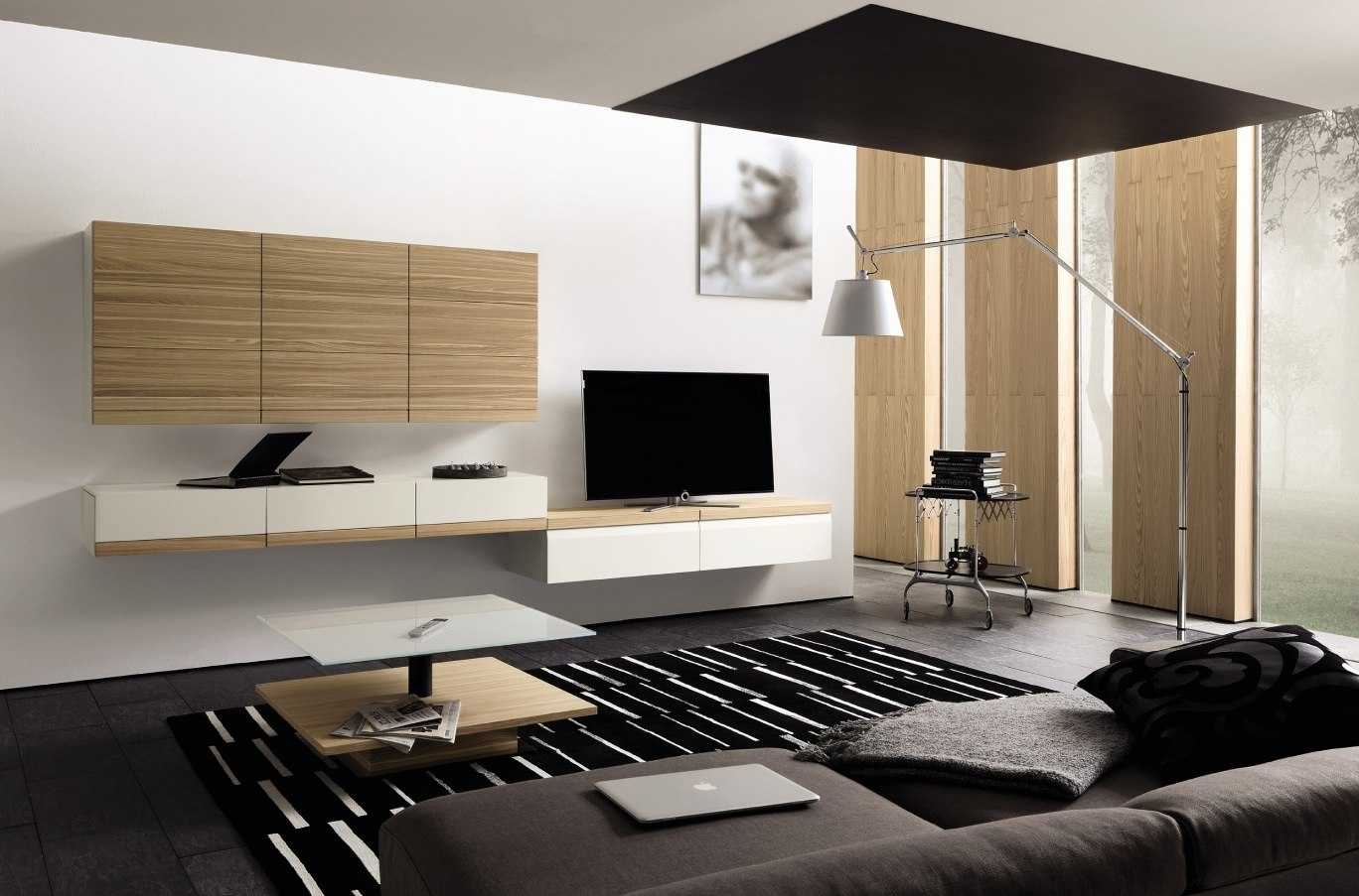 Современные стенки отличаются от старых бабушкиных гарнитуров и планировкой, и наполнением. По сути, это лаконичные блочные конструкции, которые можно компоновать на свое усмотрение. Например, совмести тумбу под телевизор с открытыми полками, закрытыми модулями и несколькими узкими пеналами.