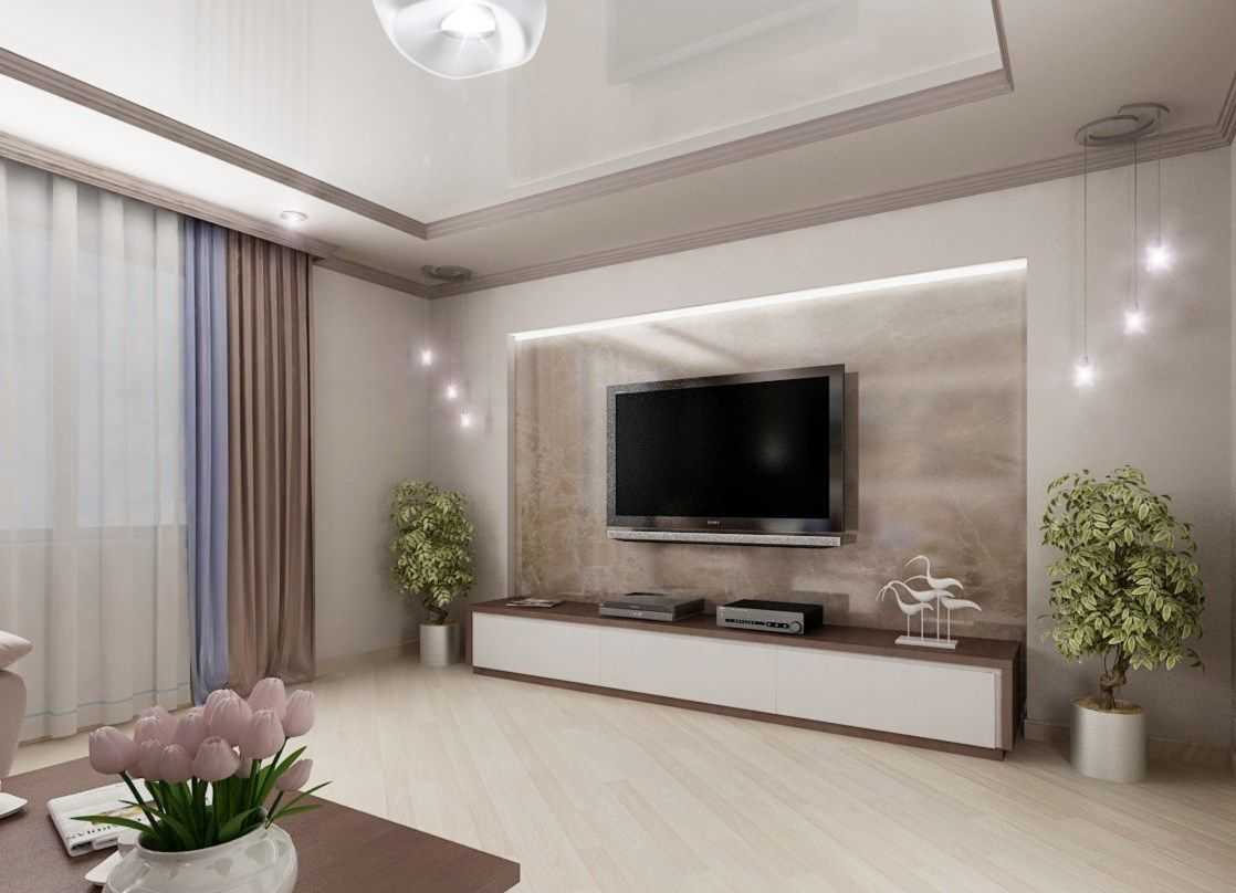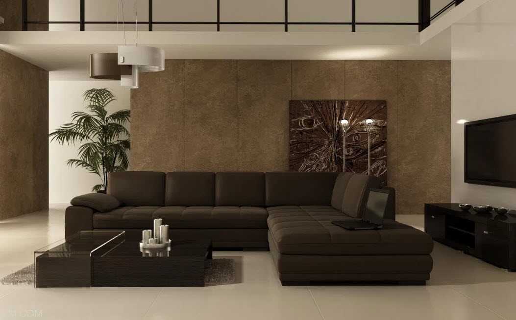 Коричневый цвет – еще одно прекрасное решение, ведь это натуральный цвет древесины. Для оформления используют паркет или ламинат, деревянные элементы и обычную неокрашенную мебель. Если площадь комнаты позволяет, то можно оформить глянцевые потолки коричневого цвета, что выглядит необычно и крайне привлекательно.