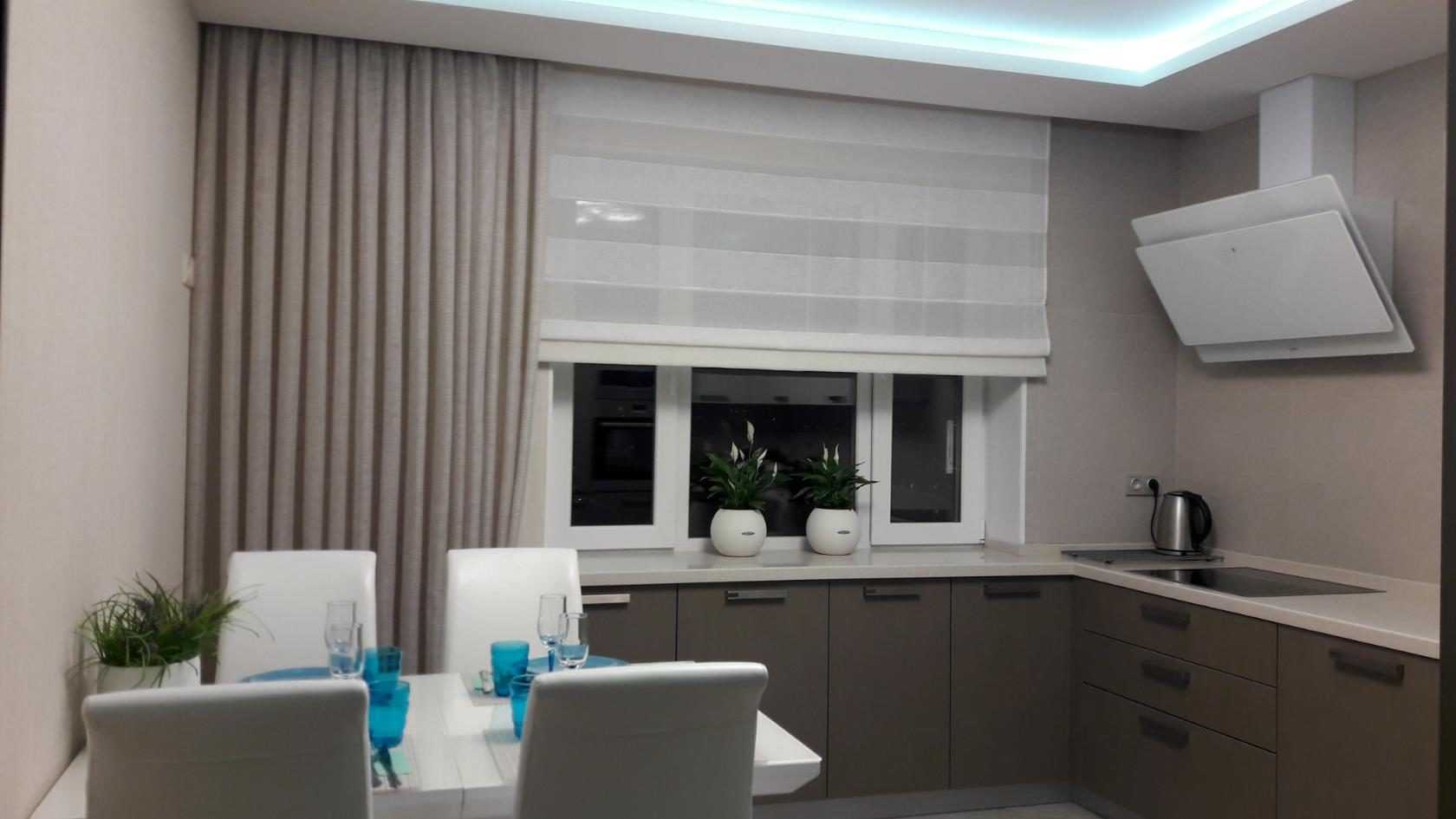 Для организации простого и лаконичного интерьера в стиле минимализм, рекомендуется отказаться от традиционного текстиля, и отдать предпочтение японским или римским шторам, либо жалюзи. Выглядят они гораздо более изысканно и строго, при этом идеально вписываются в интерьер кухни, обустроенной в стиле минимализм.