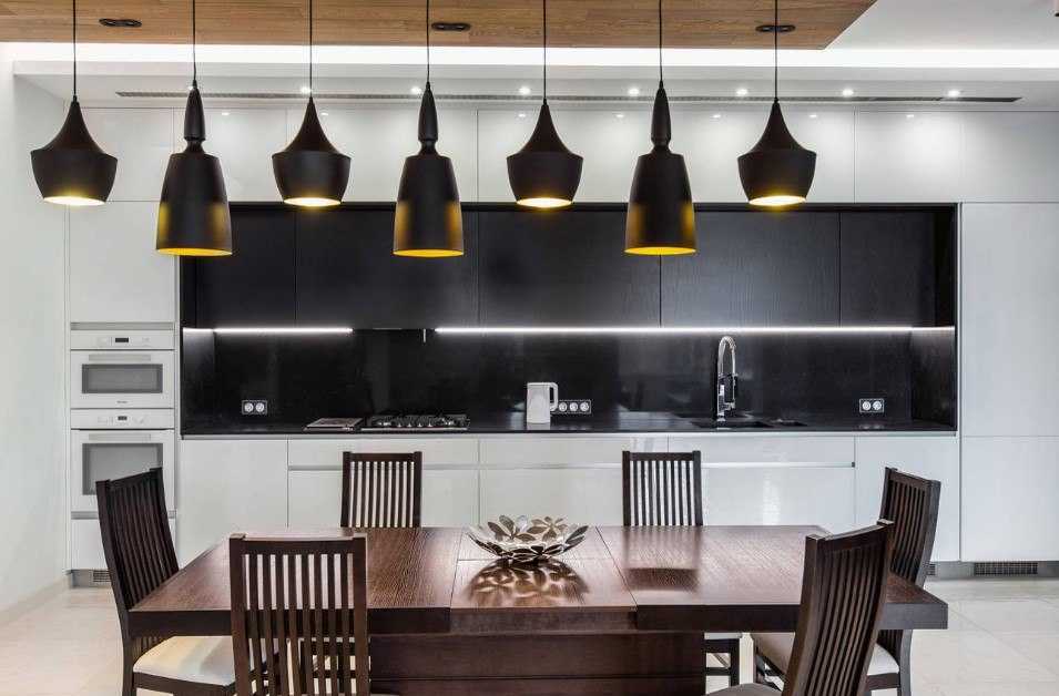 Просторная черно-белая кухняИсточник idealnijdom.ru