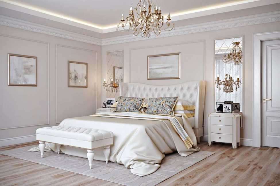Желание оформить спальню в интерьере неоклассика детально продумывают. Сначала составляют список комфортабельной мебели, определяются с материалами для отделки и декорирования. Лишняя помпезность испортит впечатление от комнаты, поэтому соблюдают меру.