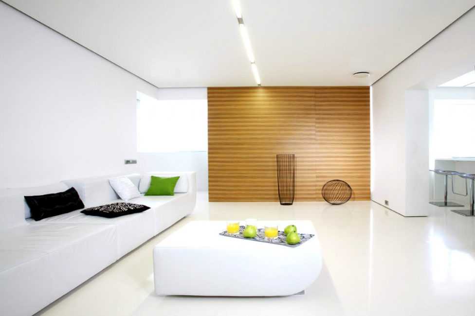 К главным характерным чертам гостиной в стиле минимализм относят следующее: