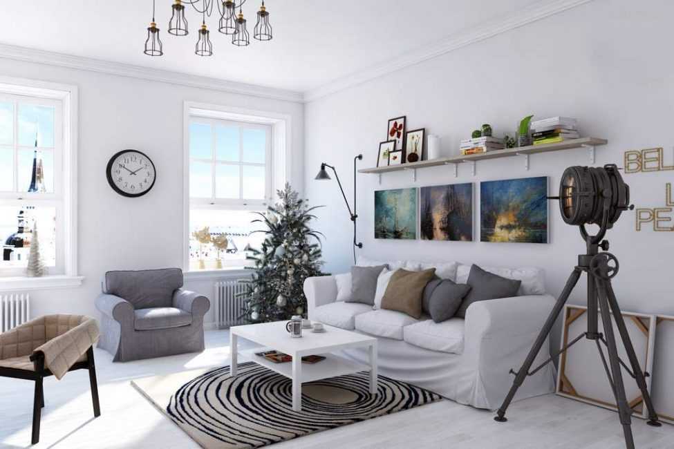 Стены гостиной в скандинавском стиле должны быть идеально ровными