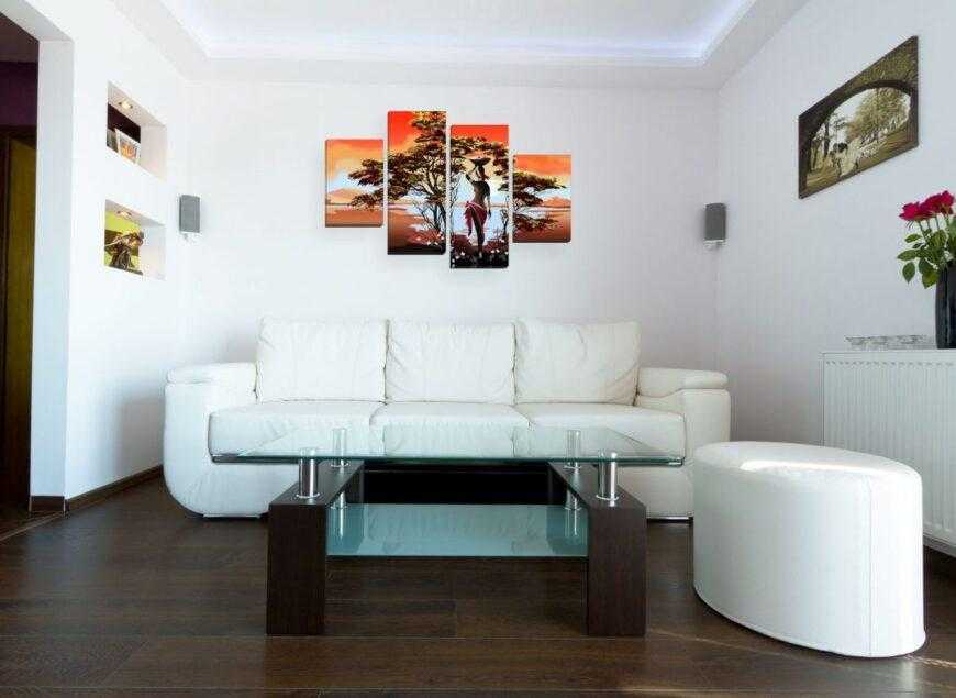 Картины в современном интерьере гостиной можно развесить несколькими интересными вариантами: