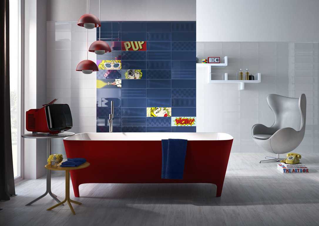 На первый взгляд может показаться, что дизайн ванны в поп-артовском стиле – задумка глупая и невыполнимая. Смею не согласиться. На самом деле даже это помещение можно наполнить индивидуальностью и неповторимым декором.