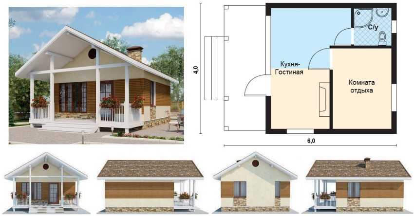 Проект дачного домика размером 6х4 м
