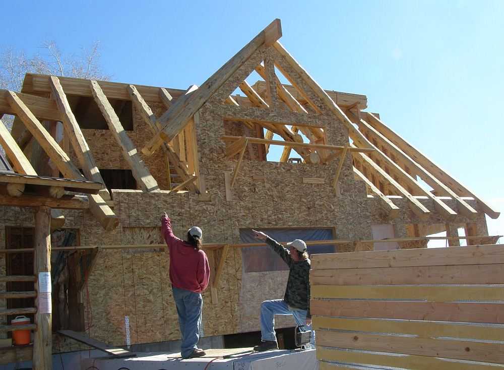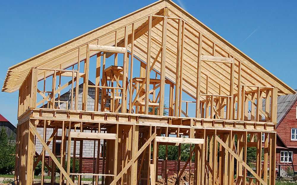Главным в строительстве современного дома является возведение силового каркаса из жестких конструкций по типу кристаллической решетки. Это делает весь дом очень прочным и увеличивает срок его эксплуатации. Для каркаса используется отобранный брус с заданной влажностью и точными размерами. В пространстве между деревом находится утеплитель (чаще это минеральная вата). С обоих сторон его изолируют паро- и гидроизоляционной пленкой.
