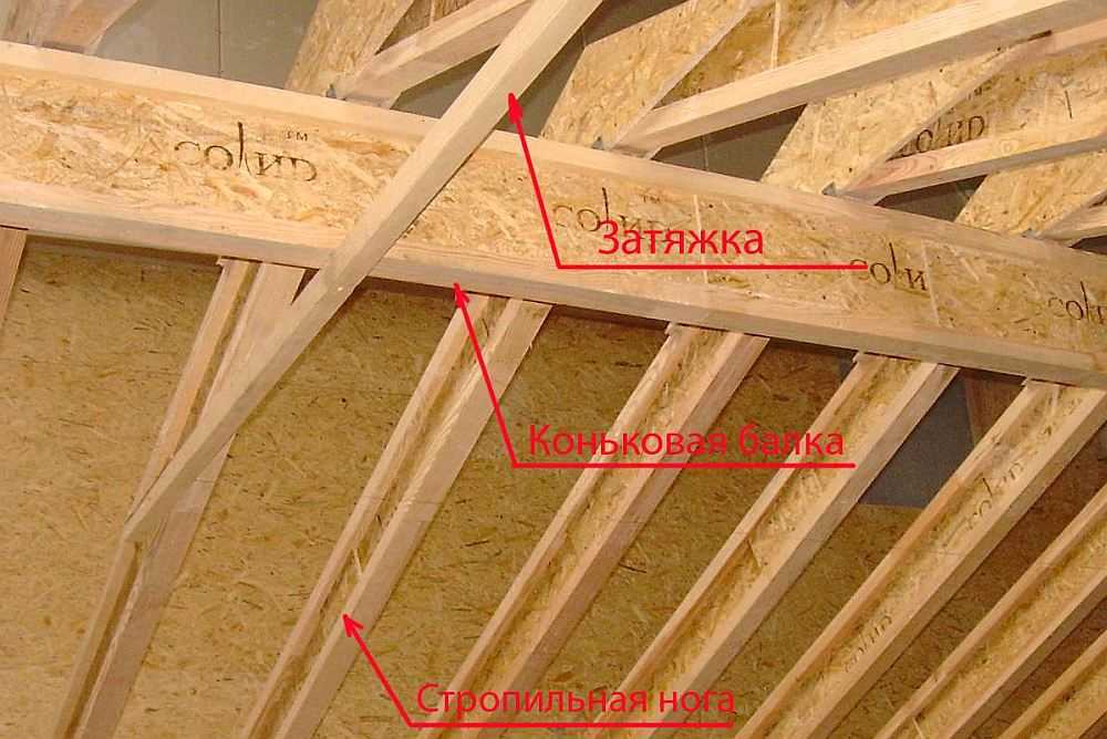 Промежуточные опорные балки. Их встраивают непосредственно во фронтонную панель. Балки проходят параллельно коньку. Этот элемент конструкции необходим, чтобы избежать прогиба панелей крыши. И коньковой брус, и балки используются в качестве несущего элемента крыши.
