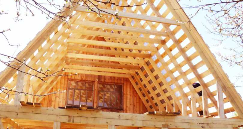 - Установить несущие балки под крышу и обрешётку для монтажа кровли.