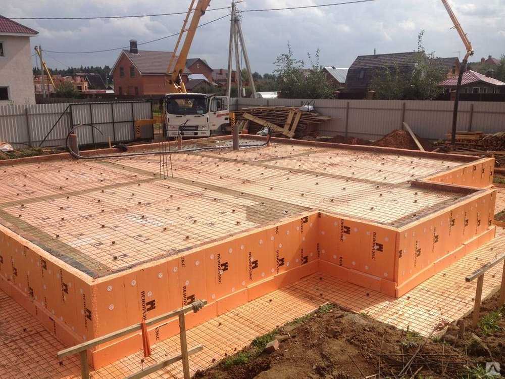 Спросом пользуется данный вид при возведенье дома с теплыми полами по грунту. Он практичен для песчаных местностей. Строительство дома ведут на плитах повышенной плотности.
