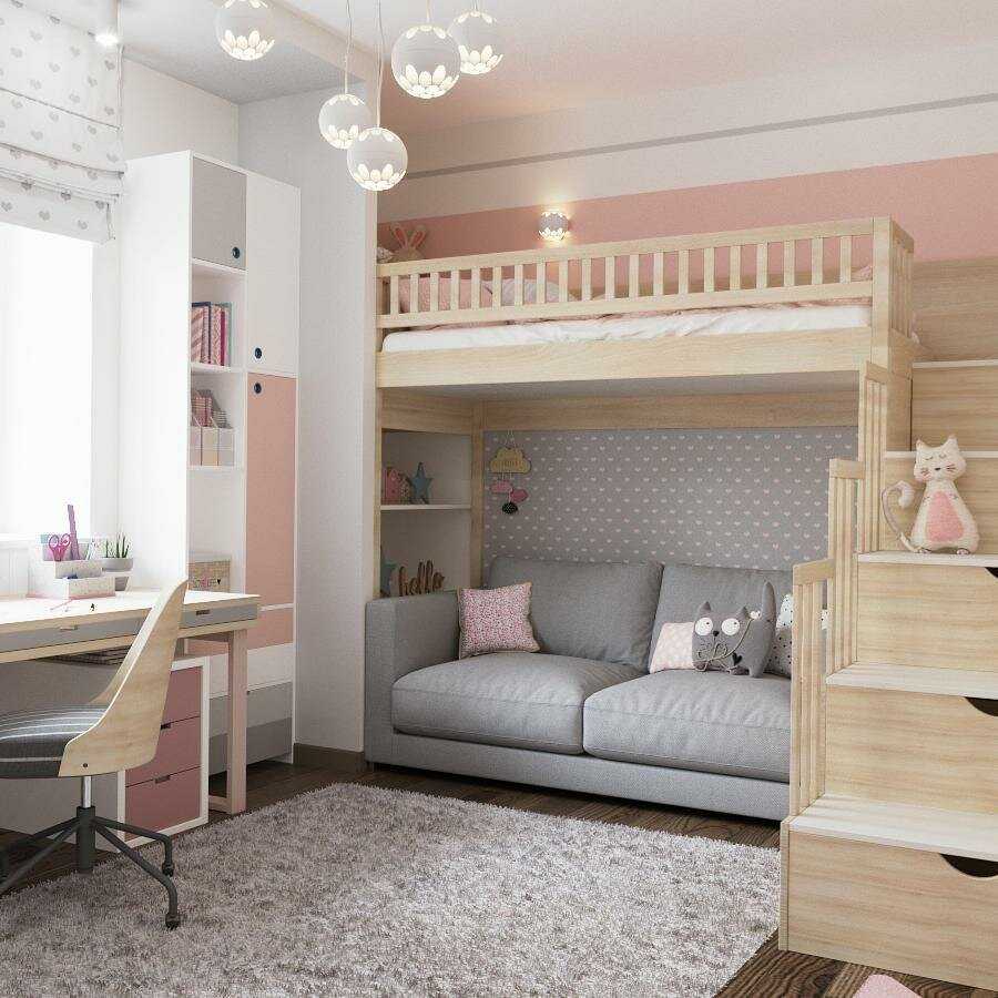 Нежно розовый и светло-серый отлично сочетаются между собой, создавая романтический интерьер в детскойИсточник design-homes.ru