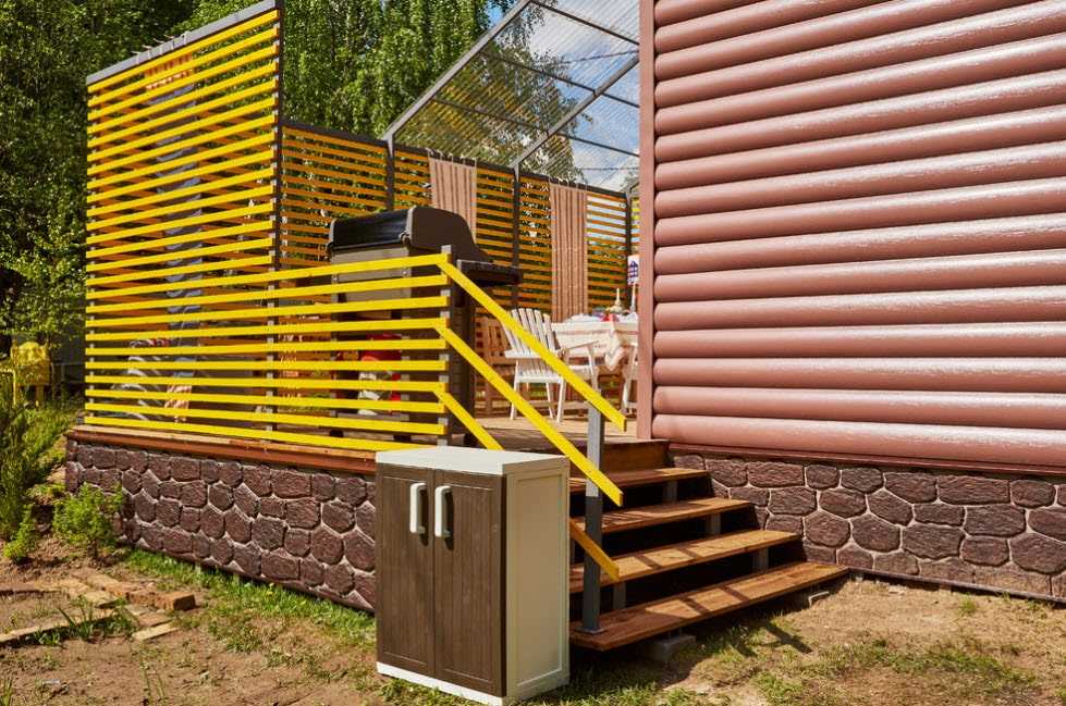 Но это лишь один вариант. Также стены могут быть выполнены из того же поликарбоната, блокхауса либо деревянной вагонки. Можно сделать и так называемую живую стену из вьющихся растений.