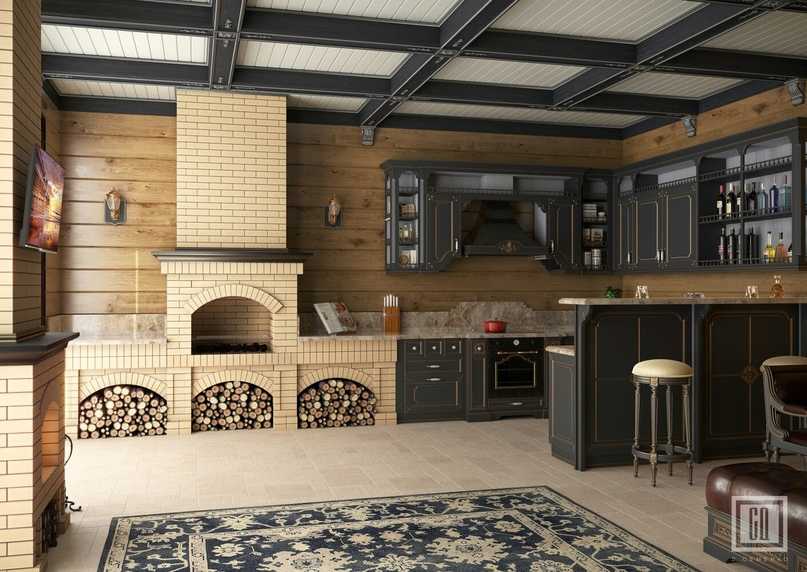 Дизайнеры рекомендуют обязательно выполнять строительство летней кухни в едином стиле. Это: