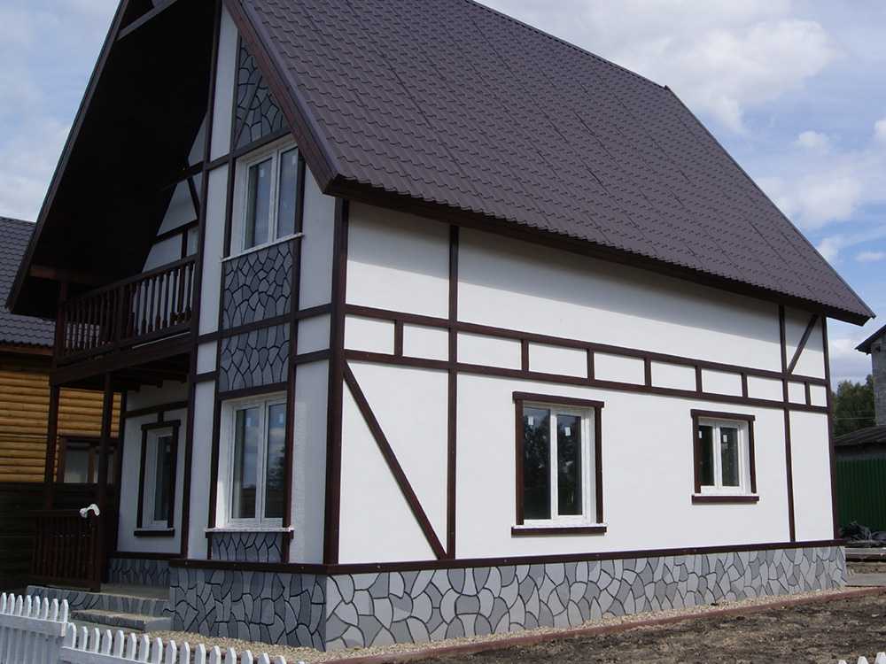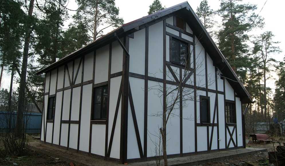 В XX и XXI веках для заполнения стен редко используют саманный наполнитель. Его заменяют на более практичный материал – кирпич или стеновые панели. Для балок каркаса используют древесину любых крепких пород. Покрытие красками дает возможность разнообразить дизайн фасадов и создать эксклюзивное оформление конструкции.