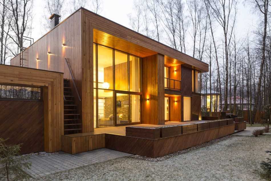 В большинстве случаев используются хвойные виды деревьев, которые благодаря обработке специальным антисептическим средством становятся более устойчивыми к воздействию грибковых инфекций, а также огня, воды и ветра. За внешний дизайн дома из древесины можно не беспокоиться, поскольку этот материал сам по себе довольно приятный для глаза.