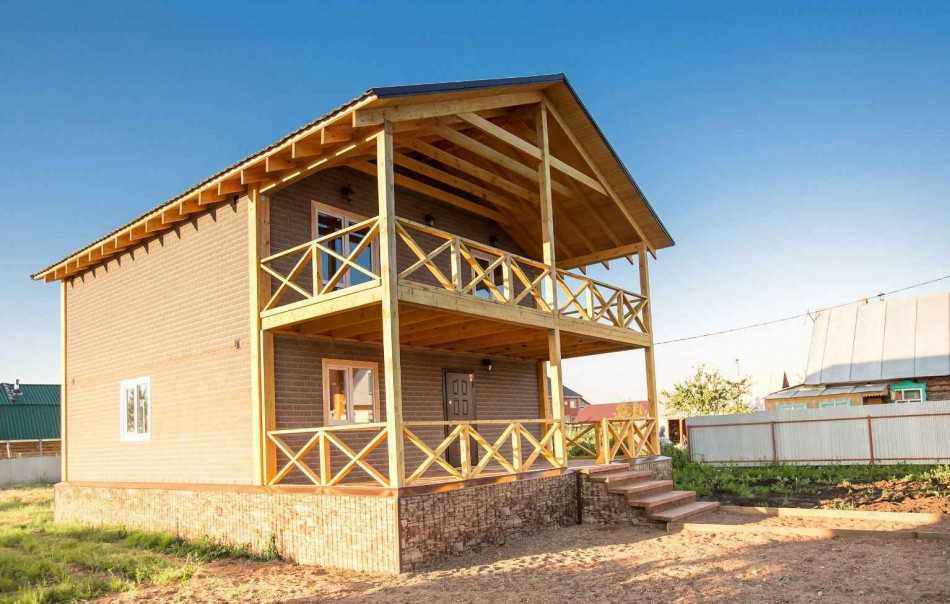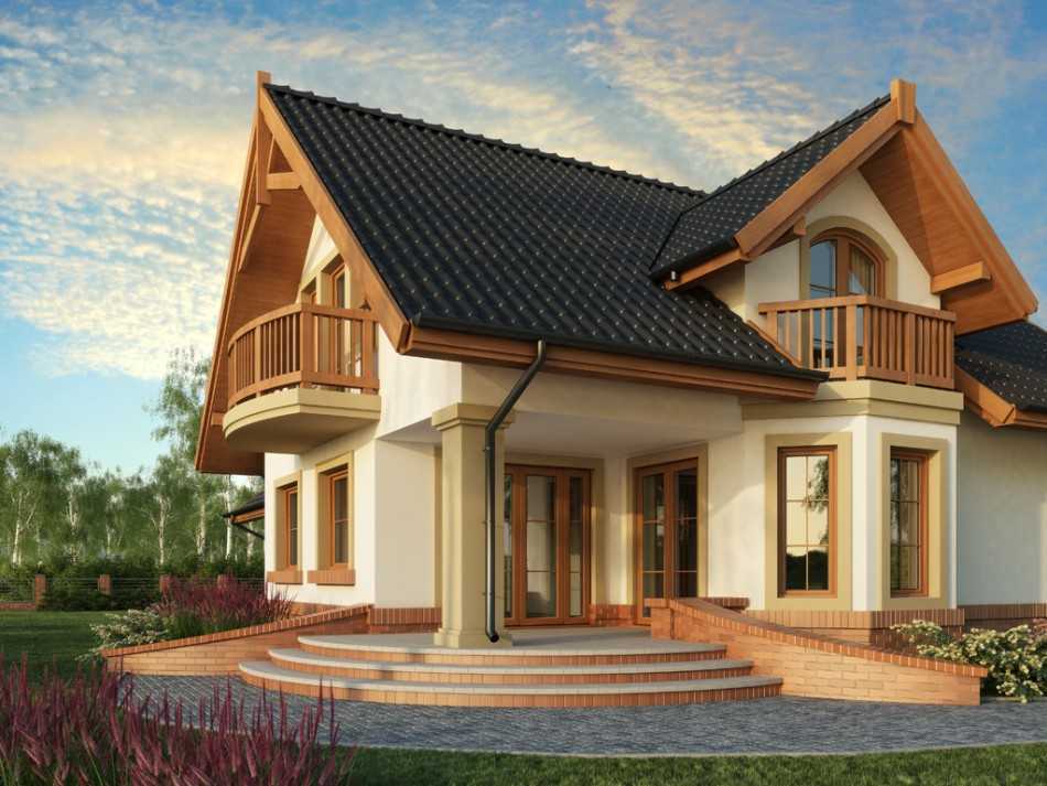 При решении строить двух-этажный дом можно разместить на втором этаже балкончики, а на первом — обеденную террасу.