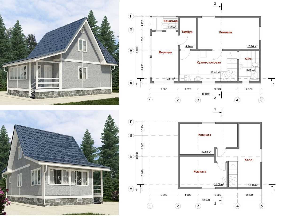 Дача с крытой верандой и мансардой 6*10 метров: поэтажная планировка