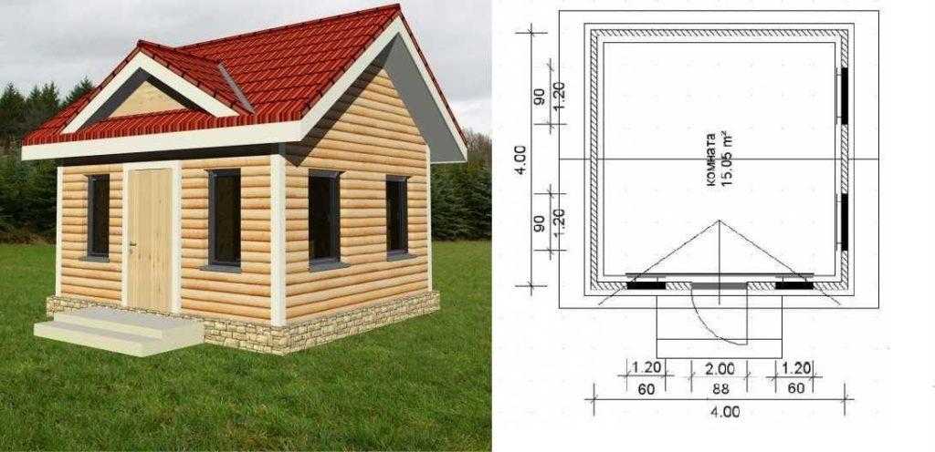 Проект садового домика с площадью 4 на 4 по каркасной технологии
