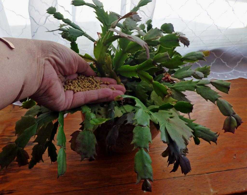 Если садовод использует комплексное удобрение для цветов, то для зигокактуса необходимо брать дозу в 2 раза меньше, чем указано на упаковке. Поливать смесью рекомендуется один раз в месяц. В летний период из-за интенсивного роста стеблей количество подкормок необходимо увеличить до двух раз, а с наступлением осени прекратить.