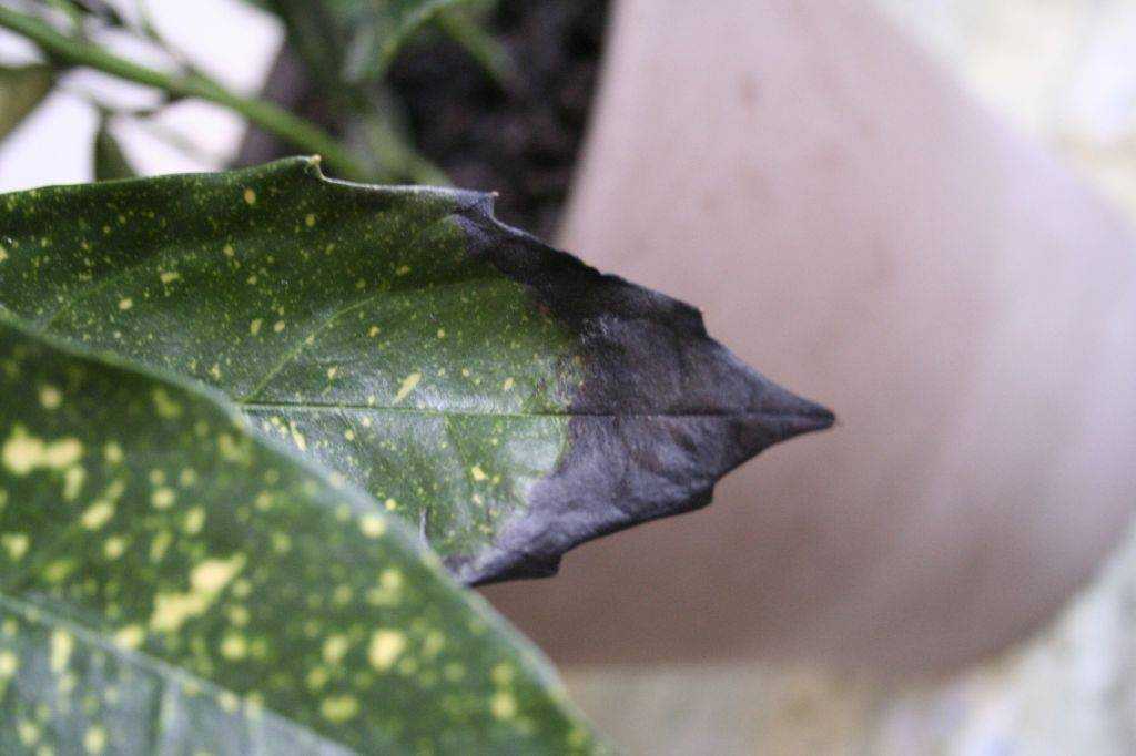 Кончики листьев начинают чернеть при чрезмерном количество поливов