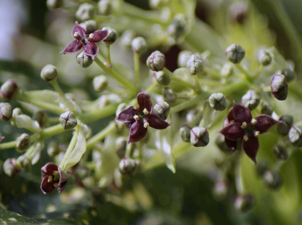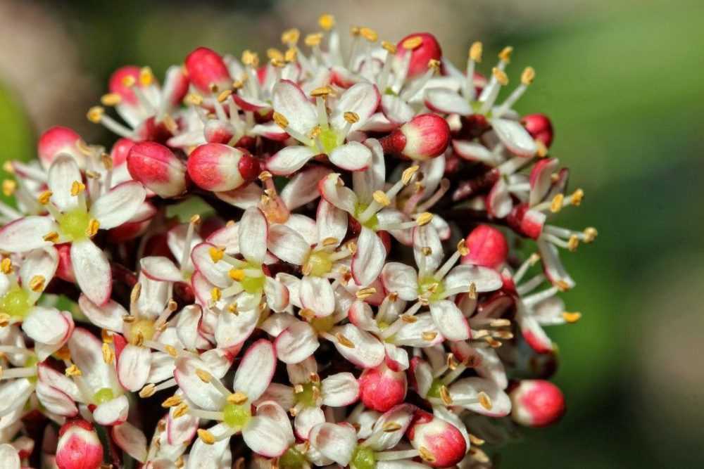 Цветение аукубы. У растения мелкие цветки красноватого цвета, собранные в верхушечные или пазушные метельчатые соцветия. Плоды аукубы красные, внешне похожие на небольшие ягодки.