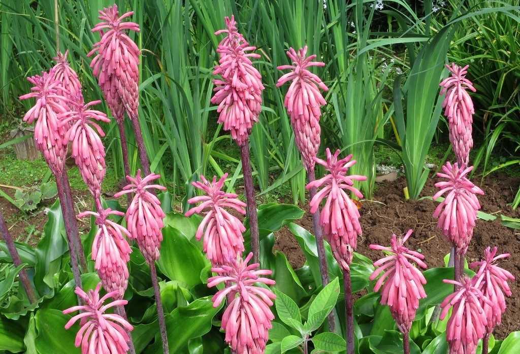 - Многолетний кустарник вытягивается до 50 см. Имеет слабоветвистые побеги и зелёные листья. Форма их широколанцетная до 8 см в длину, с волнистой поверхностью. Соцветия трубчатые 10 см в диаметре, с различными оттенками.