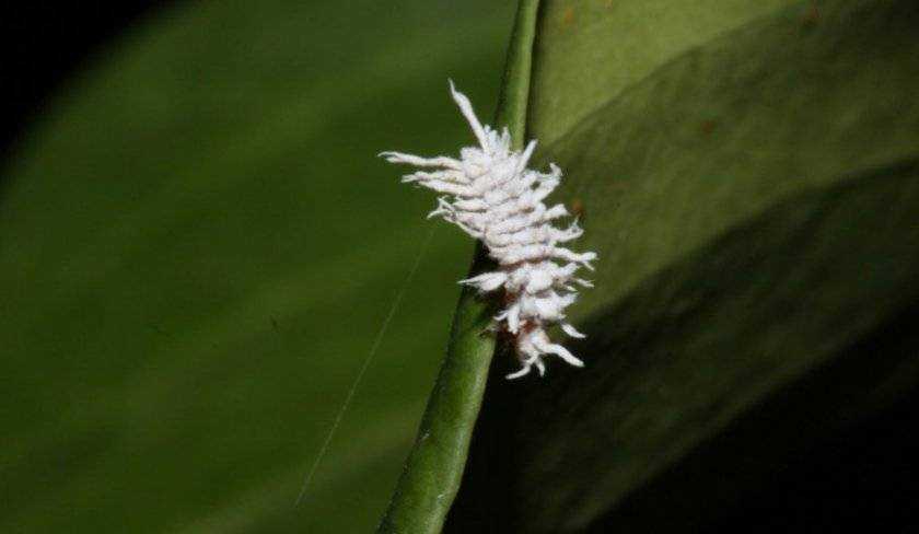 Мучнистый червец – поражает стебли и листья растения. Массовые скопления вредителя сосредотачиваются в пазухах листа и на нижней стороне листа. Вредителя легко обнаружить по грязно-белому комковатому мучнистому налету (напоминает вату) и липкой жидкости на листьях.