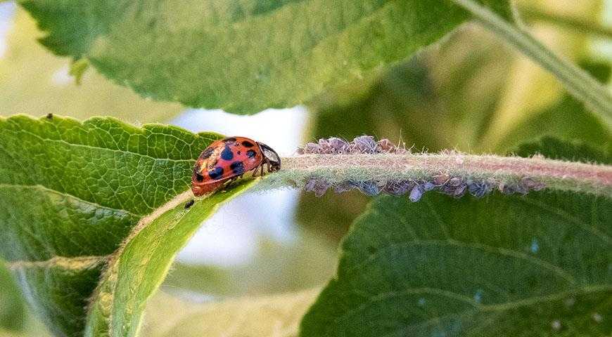 Народные средства разнообразны и дешевы, но действуют недолго – они могут лишь на время победить насекомых. С невысоких кустарников (смородина) можно тлю смыть в кастрюльке с раствором воды и жидкого мыла (типа «Фейри») – подобная эмульсия покроет листья тонкой пленкой, и оставшимся насекомым будет сложно высасывать сок. Но если колония прочно обосновалась на растениях, настоями чеснока и чистотела, припудриваниями золой ее не извести – придется прибегнуть к помощи инсектицидов.